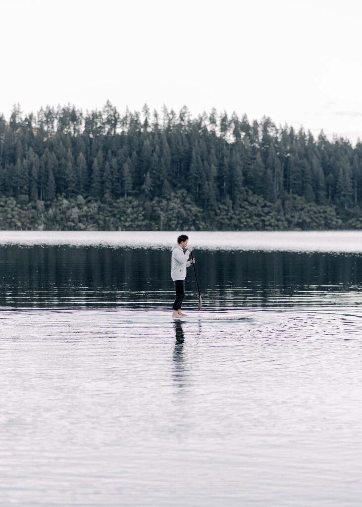 Paddle-boarding on Lake Tikitapu (Blue Lake).