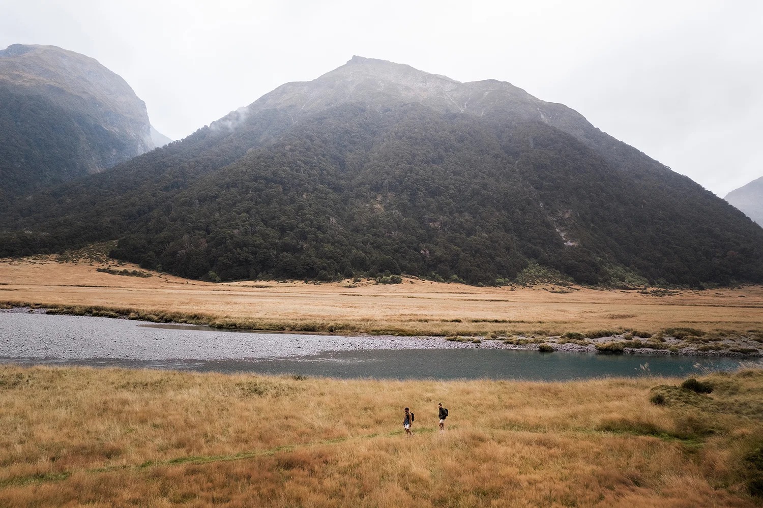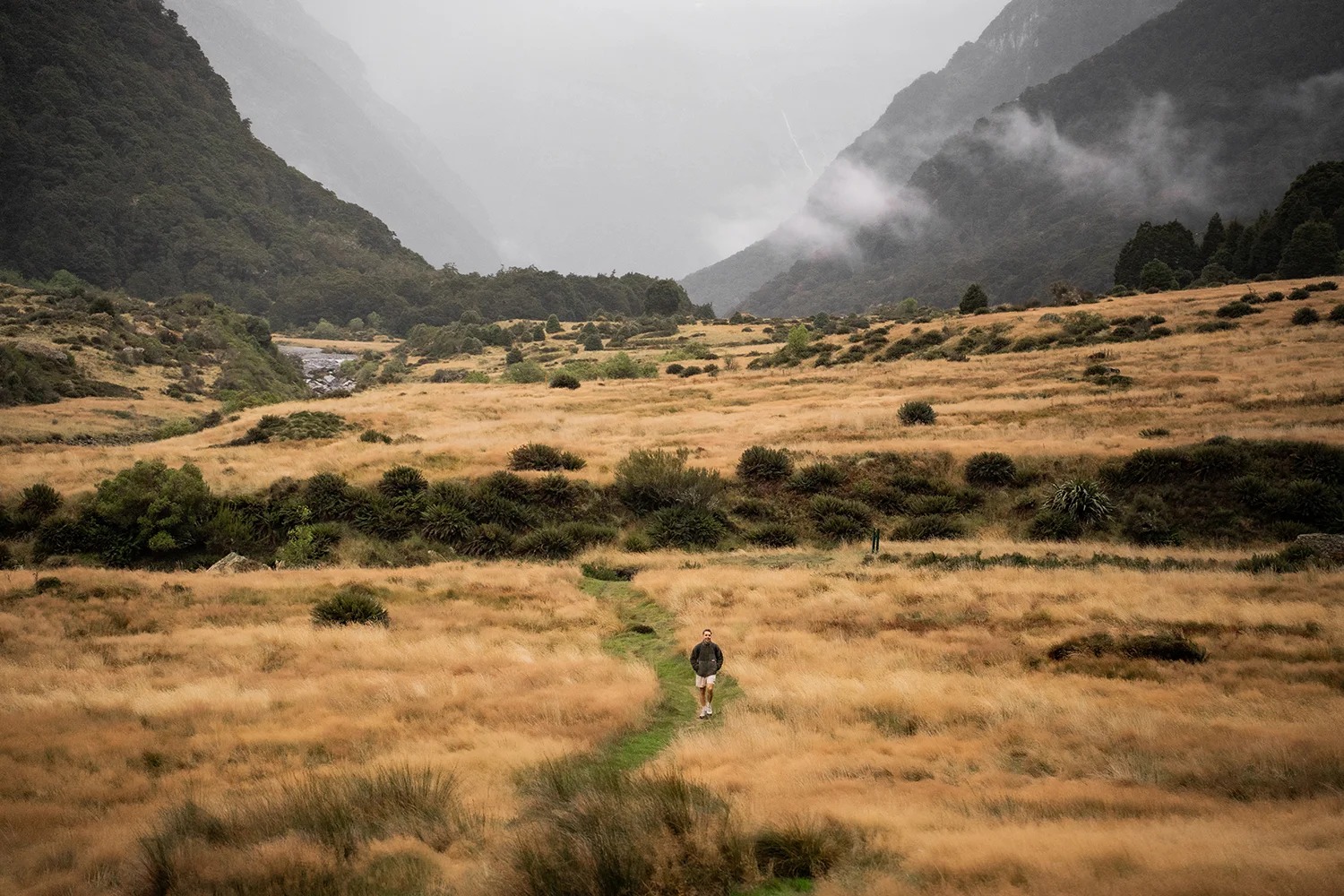 Once you’ve landed, it’s boots-on and time to walk. The track weaves its way through a mix of native beech forest, open tussock flats, and mountain streams. It’s 7km in total — expect to spend around 2.5 to 3 hours on the trail, depending on your pace and how many photo stops you make.