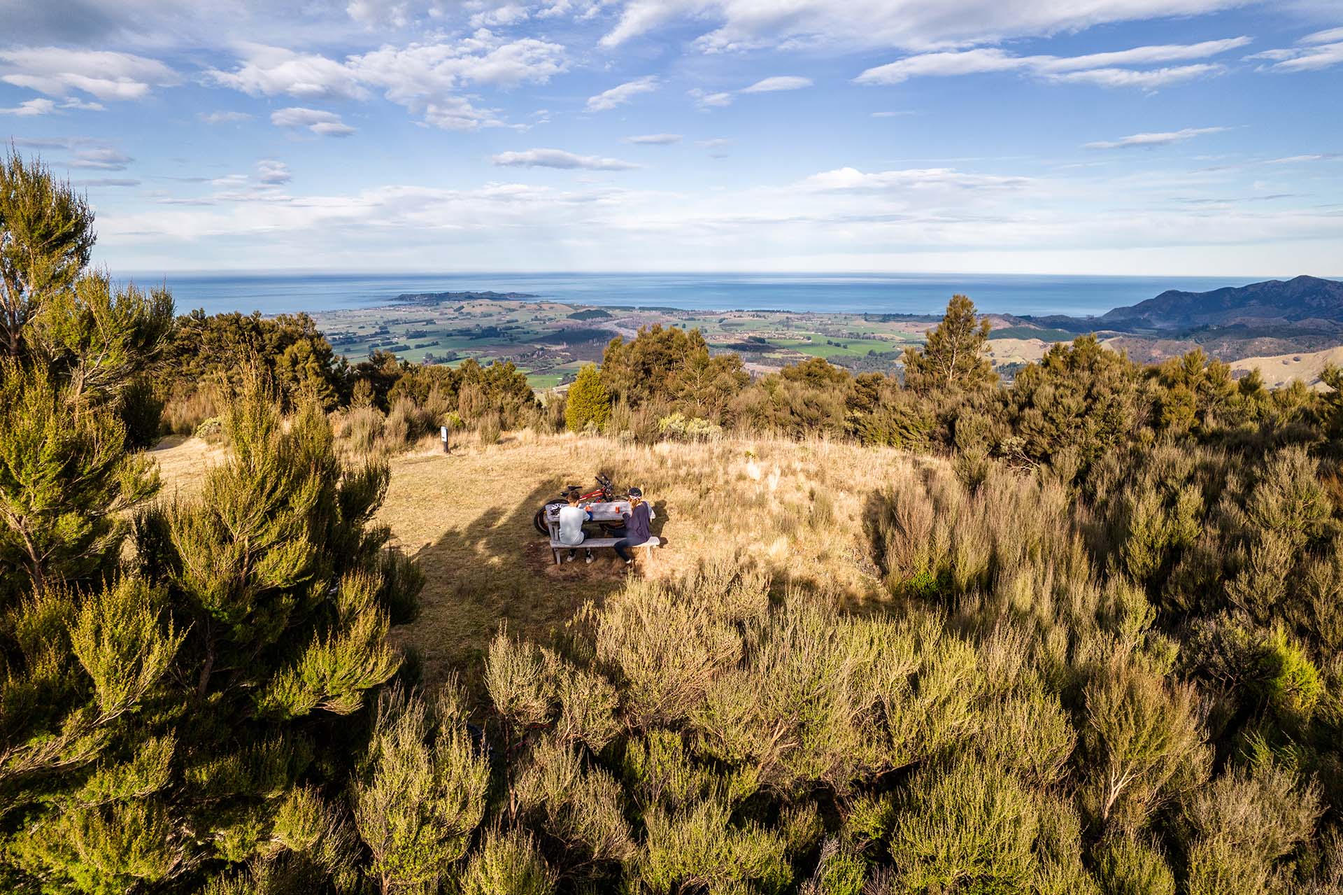 Enjoying a picnic at the top of the Kaiterau Trail.