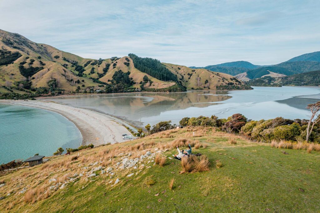 You’ve touched down in Blenheim roaring and ready to get on the road! You’re excited, you’ve got all the gear but you’re camperless. It’s time to visit local legend Katie to pick up Te Ora the Camplify camper of choice for this trip. Te Ora is a 2011 Sprinter van with all the bells and whistles needed to make it the most comfortable journey. Spacious, easy to drive, a big snuggly bed and a shower and toilet on board — what more can you ask for? Get familiar with your camper, pack all your bits away, and then it’s time to get this show on the road! First stop…the amazing small coastal town of Kaikōura.
