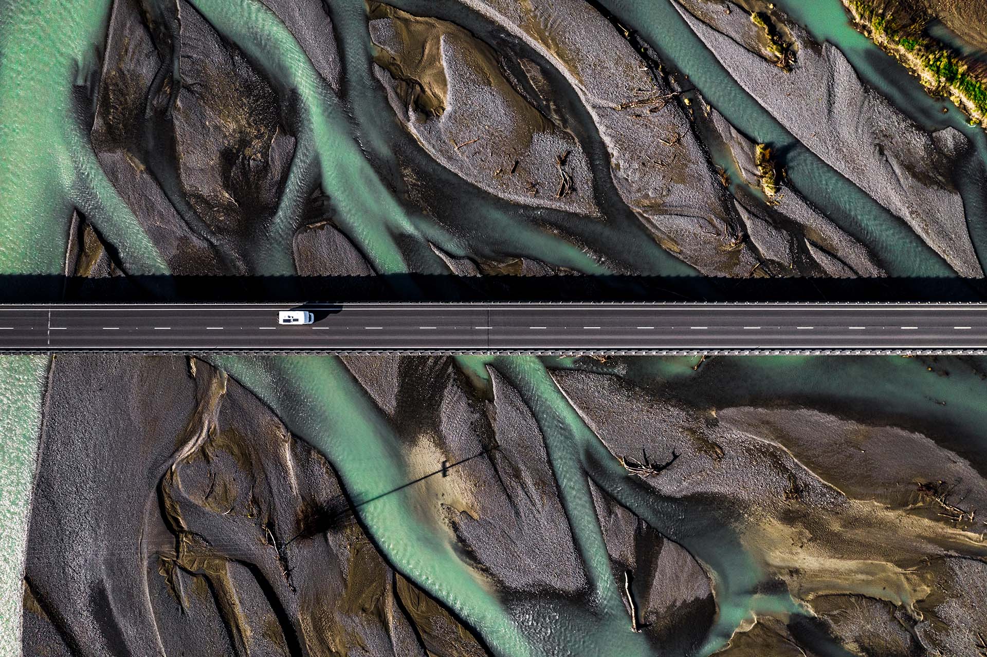 Driving across the Waiau River Bridge between Kaikoura & Christchurch.