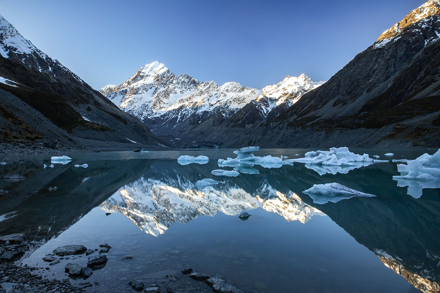 Aoraki/Mt Cook sitting pretty behind Mueller Hut.