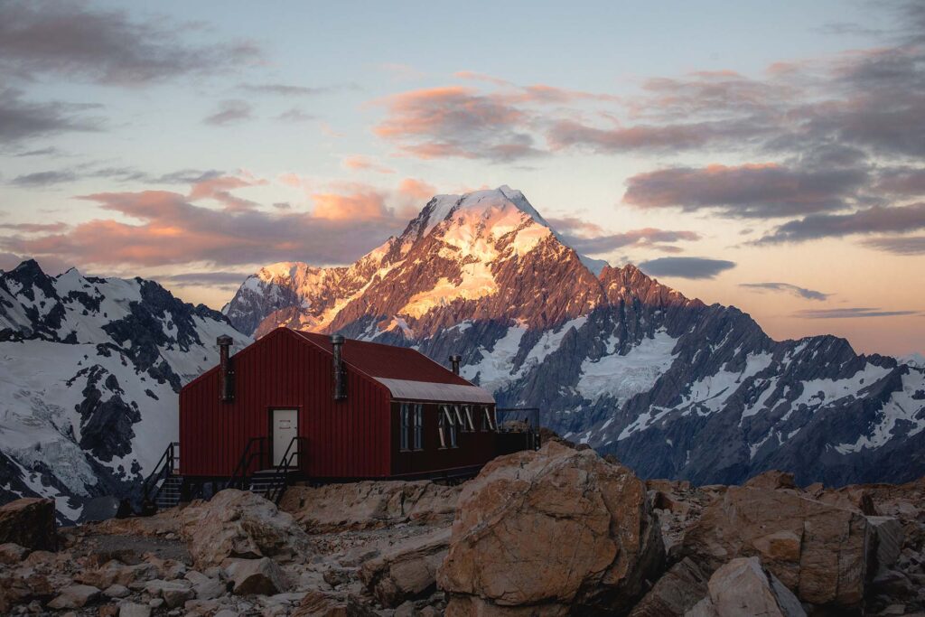 Tucked away in the mountains, sitting at 1800m on the Sealy Range is the famous red Mueller Hut. One of the most aesthetically pleasing alpine huts in NZ.