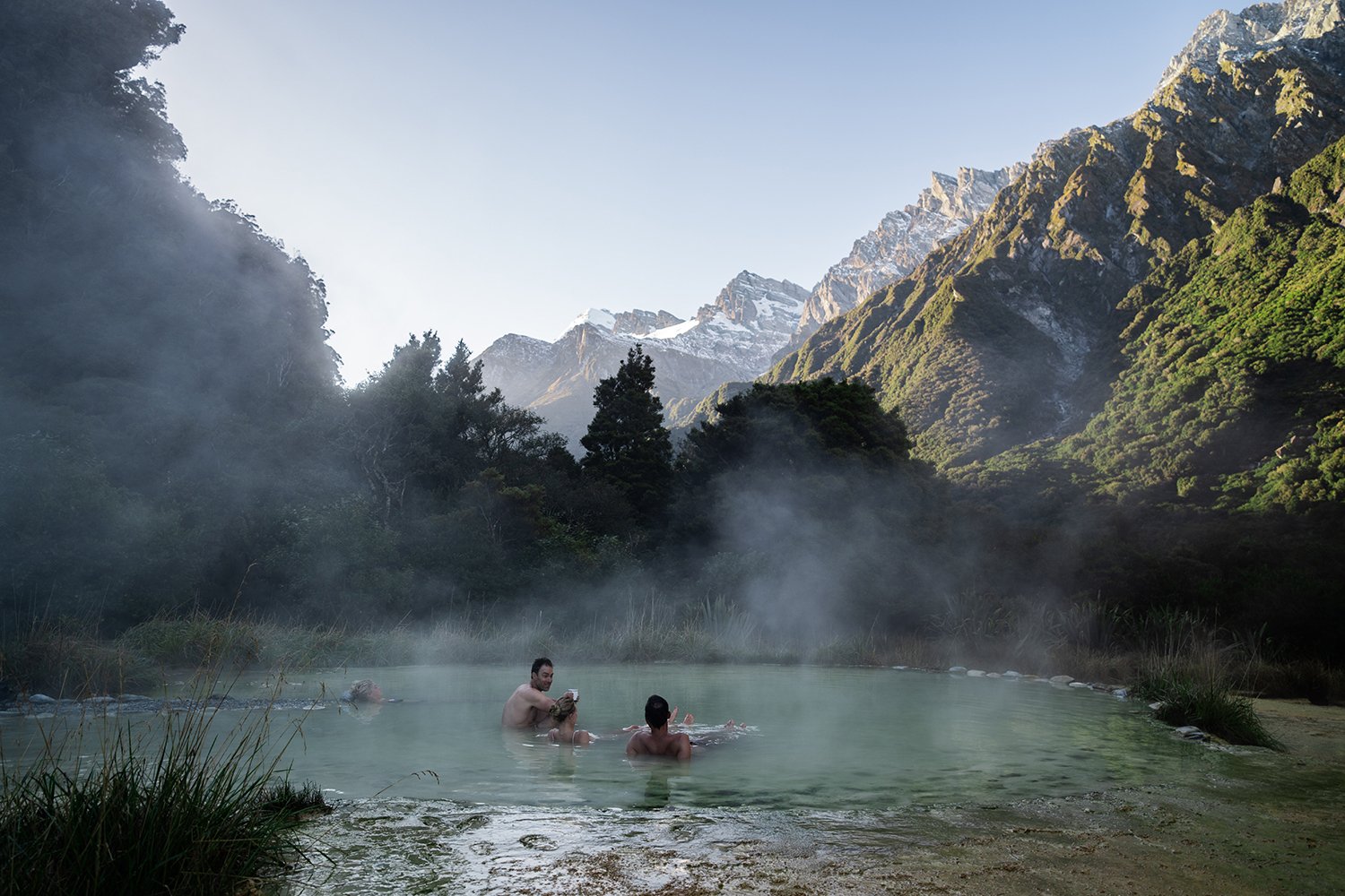 For adventurous hikers, the Alex Knob and Copland Track provide slightly more challenging but rewarding experiences with breathtaking views of the surrounding landscapes. We’d put the Copland Track up there as one of the best hikes in the whole country. At the end of the hike, you’re greeted to the Welcome Flat Hot Pools, a natural spring tucked in amongst the mountains. Spend a night at the Welcome Flat Hut and wake up with a soak in the pools. The Alex Knob Track will reward you with one of the most iconic views of the Franz Josef Glacier.